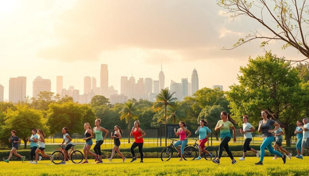 Planos com metas SMART e acompanhamento por diários ou wearables tornam a rotina sustentável. Programas escolares e corporativos que unem educação nutricional e pausas ativas aumentam a adesão ao exercício e protegem a saúde ocupacional.